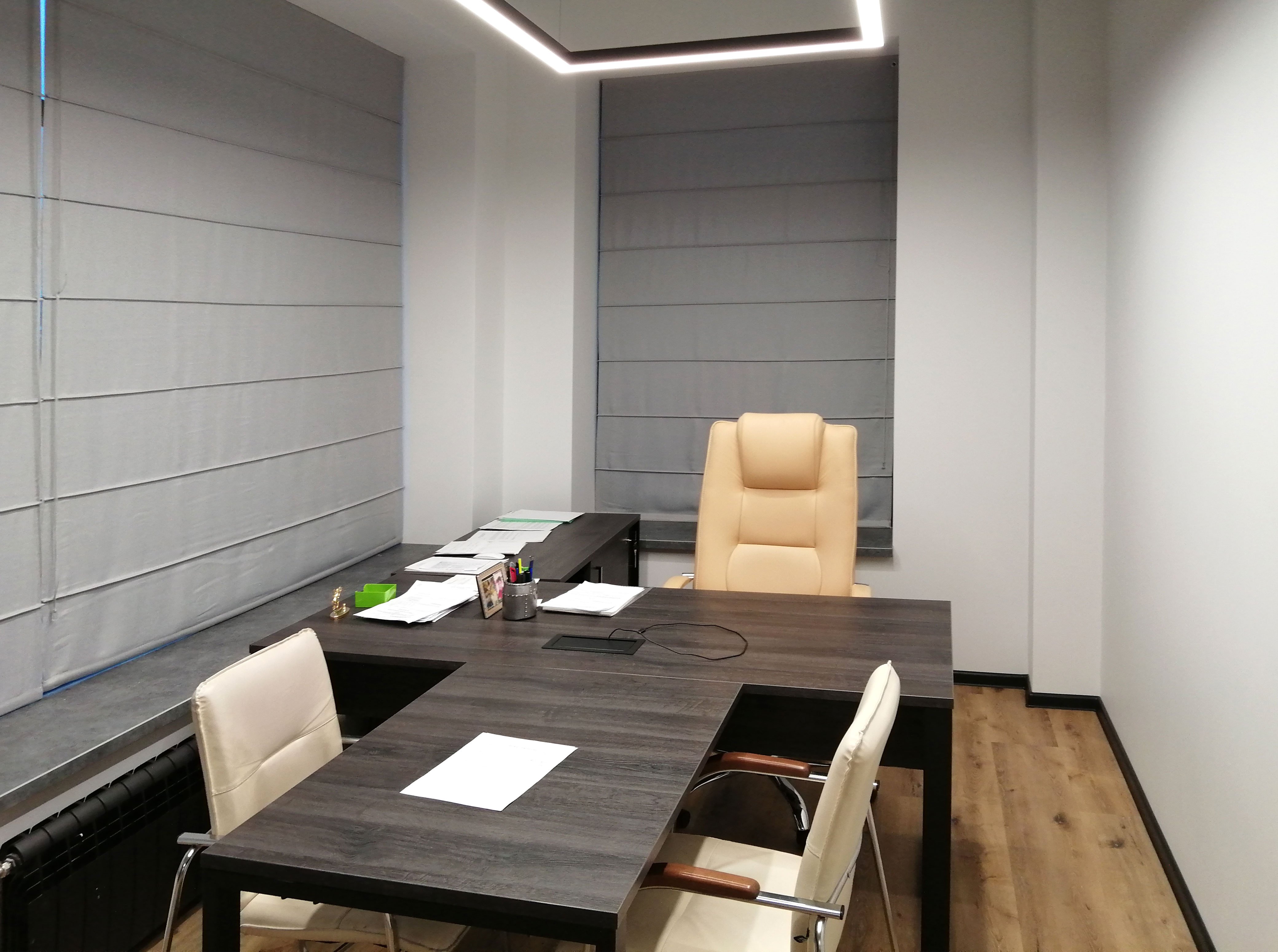 Мы предлагаем римские шторы на аккумуляторе (удобно, если к окну не подведен кабель) и модели, которые могут работать как от сети 220В.